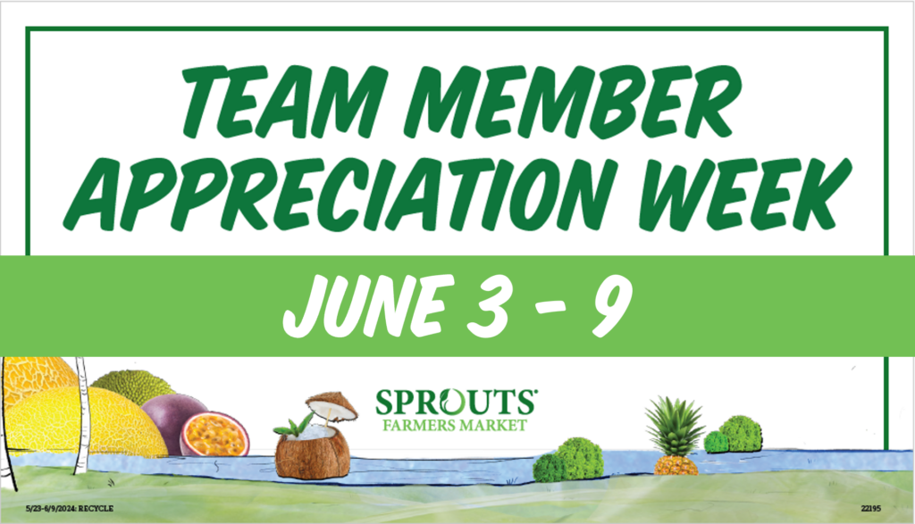 Don’t forget to shop on Sprouts Team Member 30% Discount Days on the following days: