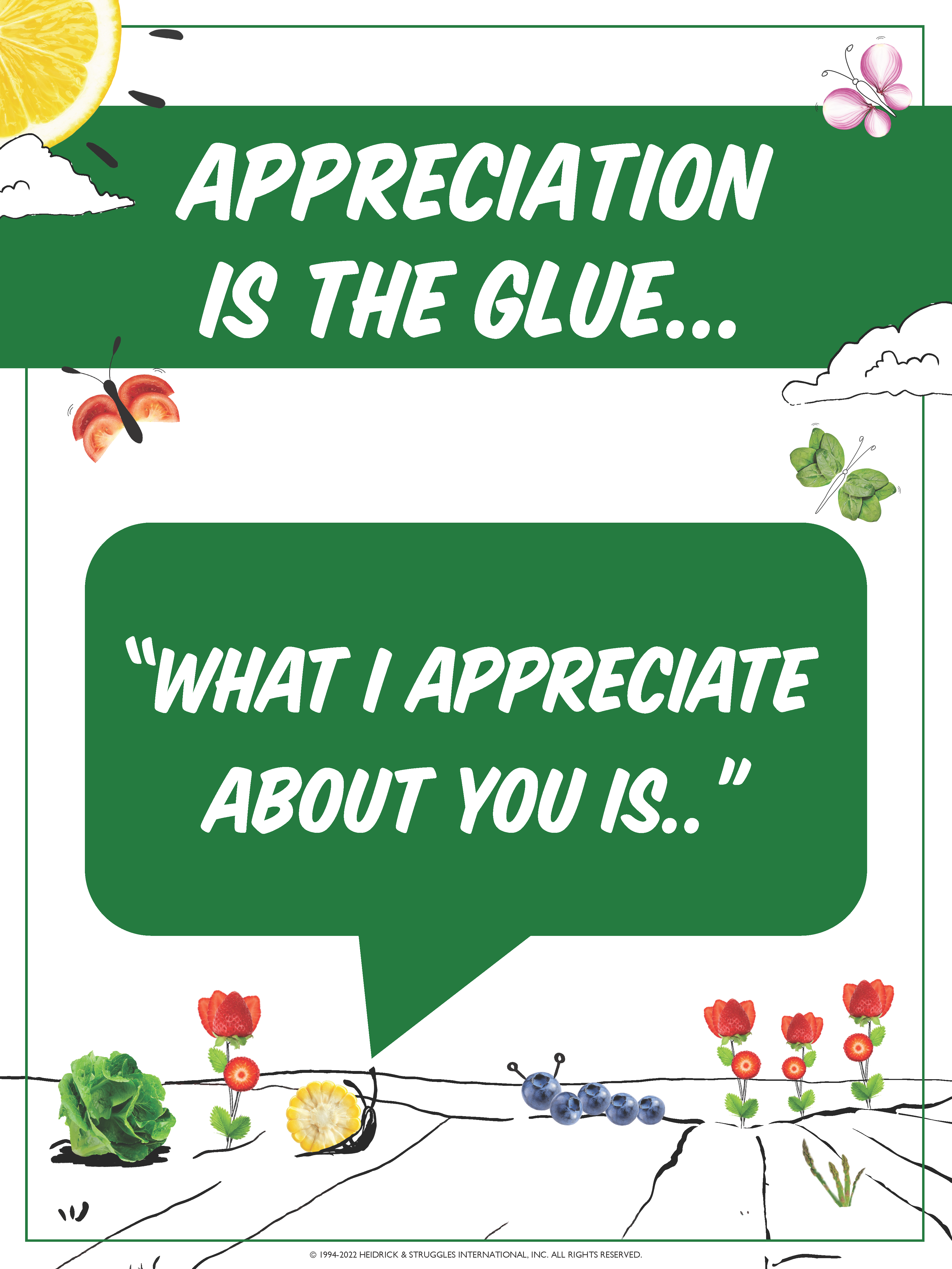 This month we’re revisiting the concept of Appreciation. Sharing Appreciation is an important part of showing your team where they’re doing well. People want to be recognized and showing appreciation can be as simple as: