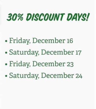 All Sprouts team members are encouraged to shop Sprouts for their holiday celebrations. Take advantage of six extra discount days added to the calendar when all team members can access a 30% discount!