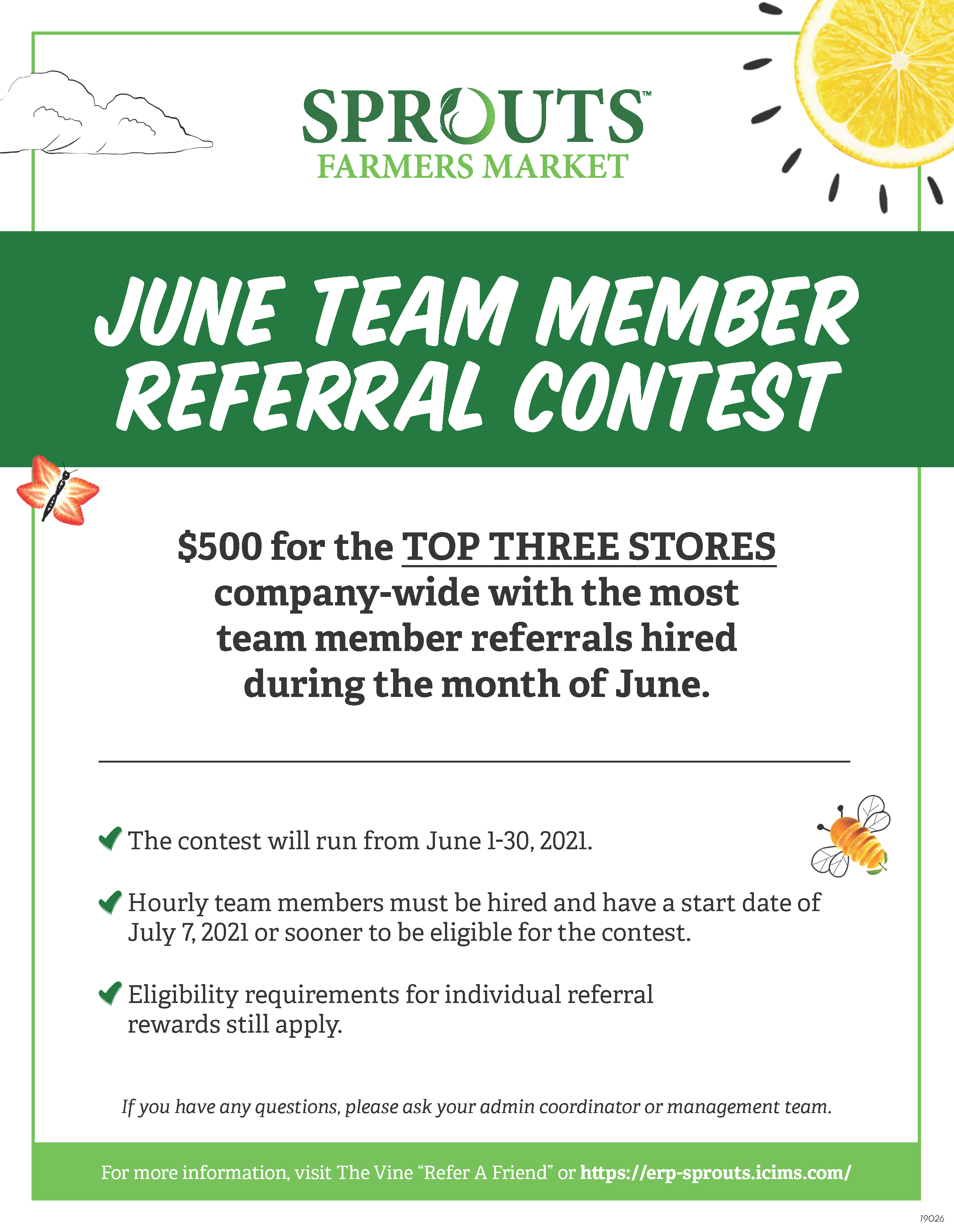 For more information, visit the Refer a Friend section of the Human Rescoures page or https://erp-sprouts.icims.com.