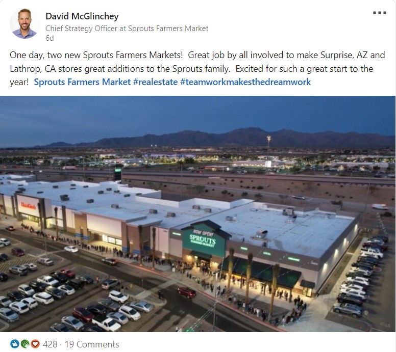 Sprouts is so excited about the most recent Store openings in Lathrop, CA and Surprise, AZ! Take a look at what people are saying on LinkedIn!