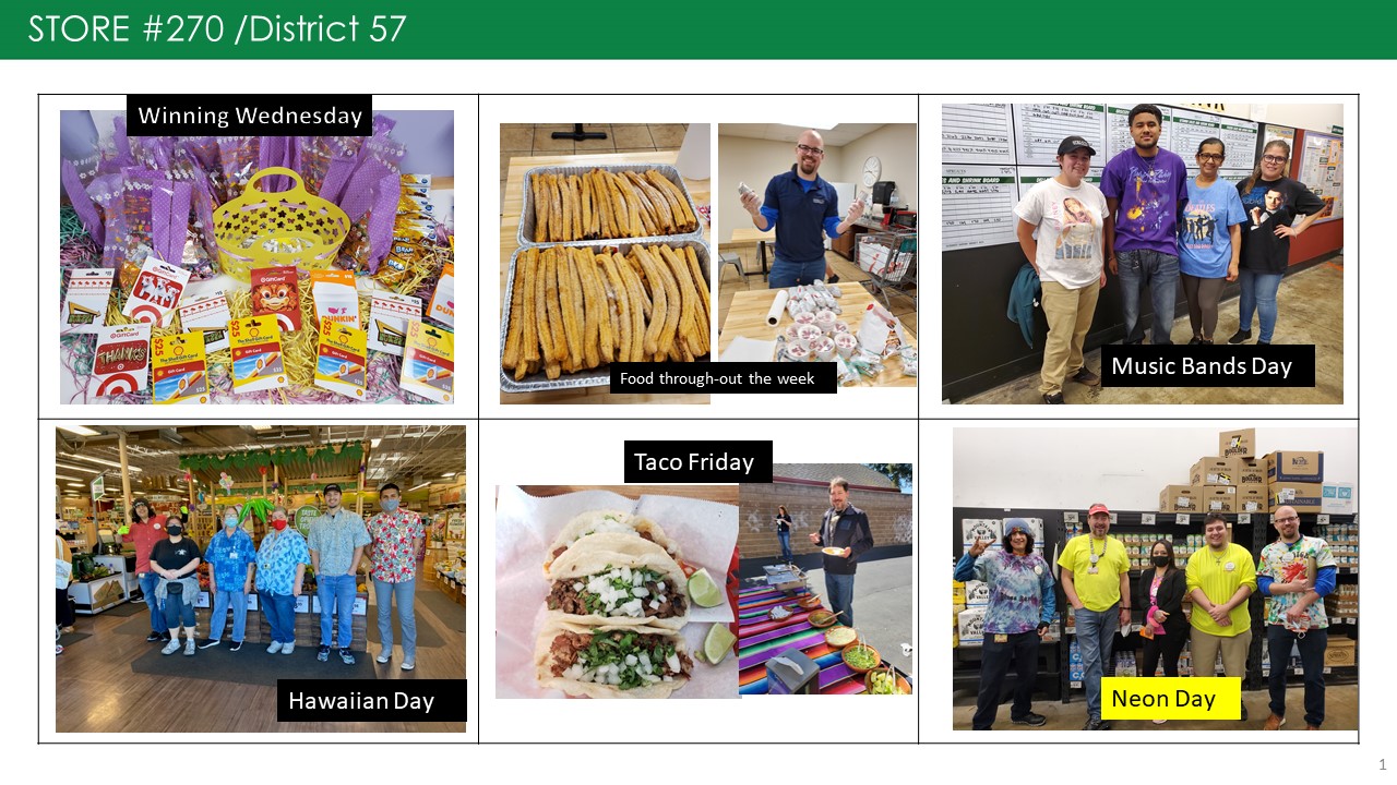 Congratulations to the winning stores in each district who were selected based on their theme, decorations, activities, and food for Q1 Team Member Appreciation Week! Each of these stores will receive a $500 gift card. Check out photos from some of the winning store’s TMAW festivities below!