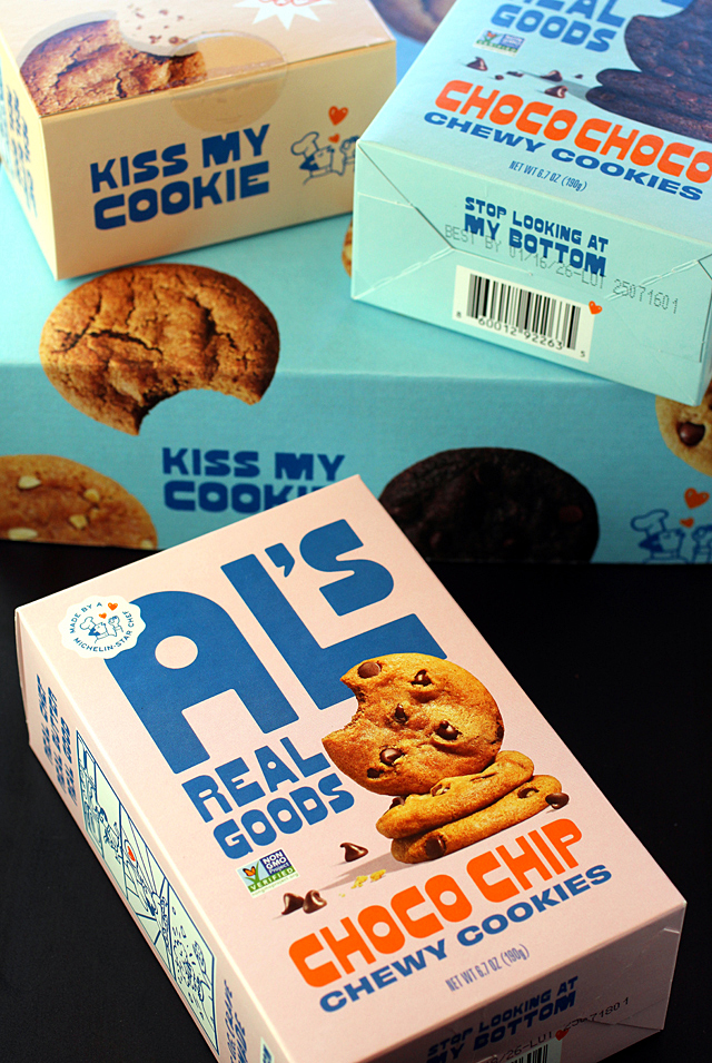 Al’s Real Goods are chewy, indulgent cookies are made with real Ingredients: Cane sugar, free-range eggs, and lots of butter from grass-fed cows.