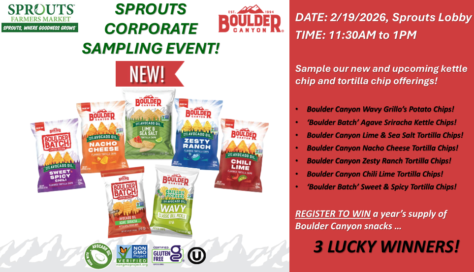 Come try our variety of nutritious plant-based, functional wellness shots, including: Immunity Ginger, Immunity Turmeric, Energy Mango Spinach, Energy Pineapple Ginger, Gut Support, Happy, and Metabolism Mango Chili Try our newest additions at Sprouts...Chill and Detox Pineapple, both will available at the stores this spring! |